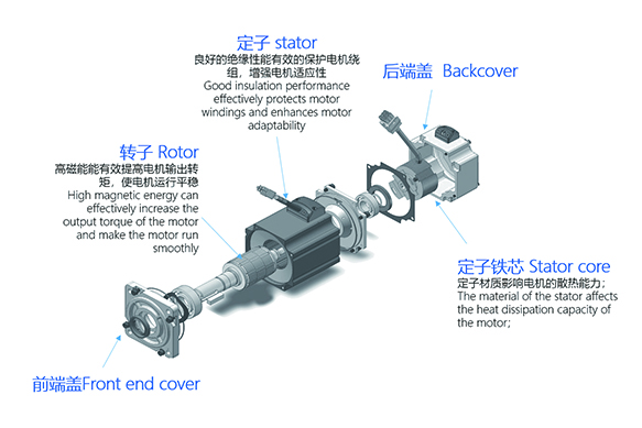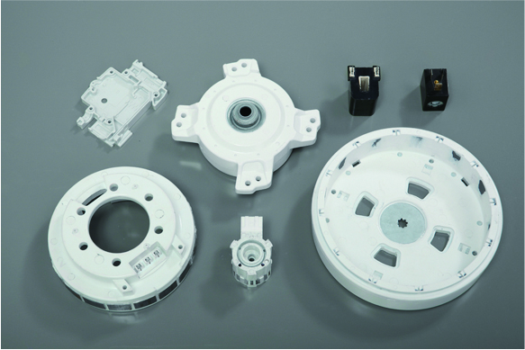直流電機(jī)轉(zhuǎn)子主要采用塑封工藝,配合注塑磁新型功能性高分子復(fù)合材料,密度小、耐沖擊強(qiáng)度大、化學(xué)穩(wěn)定性好;電機(jī)定子主要采用包膠工藝,配合BMC料,穩(wěn)定性,機(jī)械強(qiáng)度高,耐電性能,耐水和溶劑型強(qiáng),耐老化性,耐熱性。